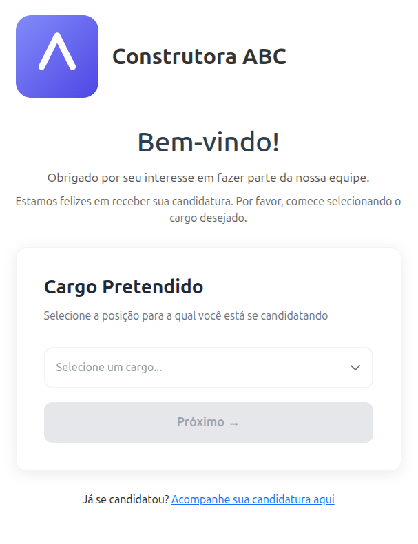O objetivo deste projeto foi sair do fluxo caótico de planilhas e formulários soltos e criar uma solução completa de ATS (Applicant Tracking System) sob medida, com: